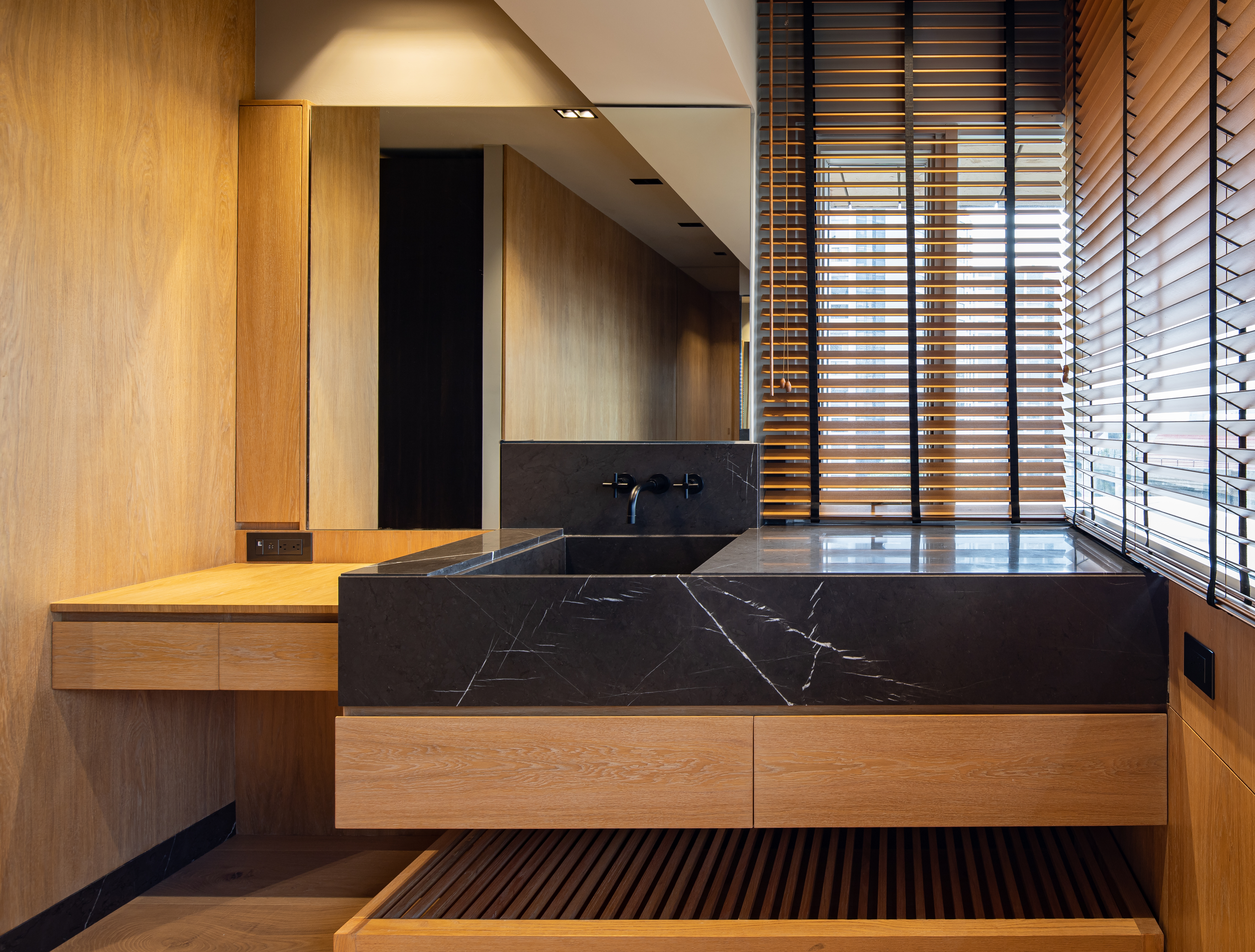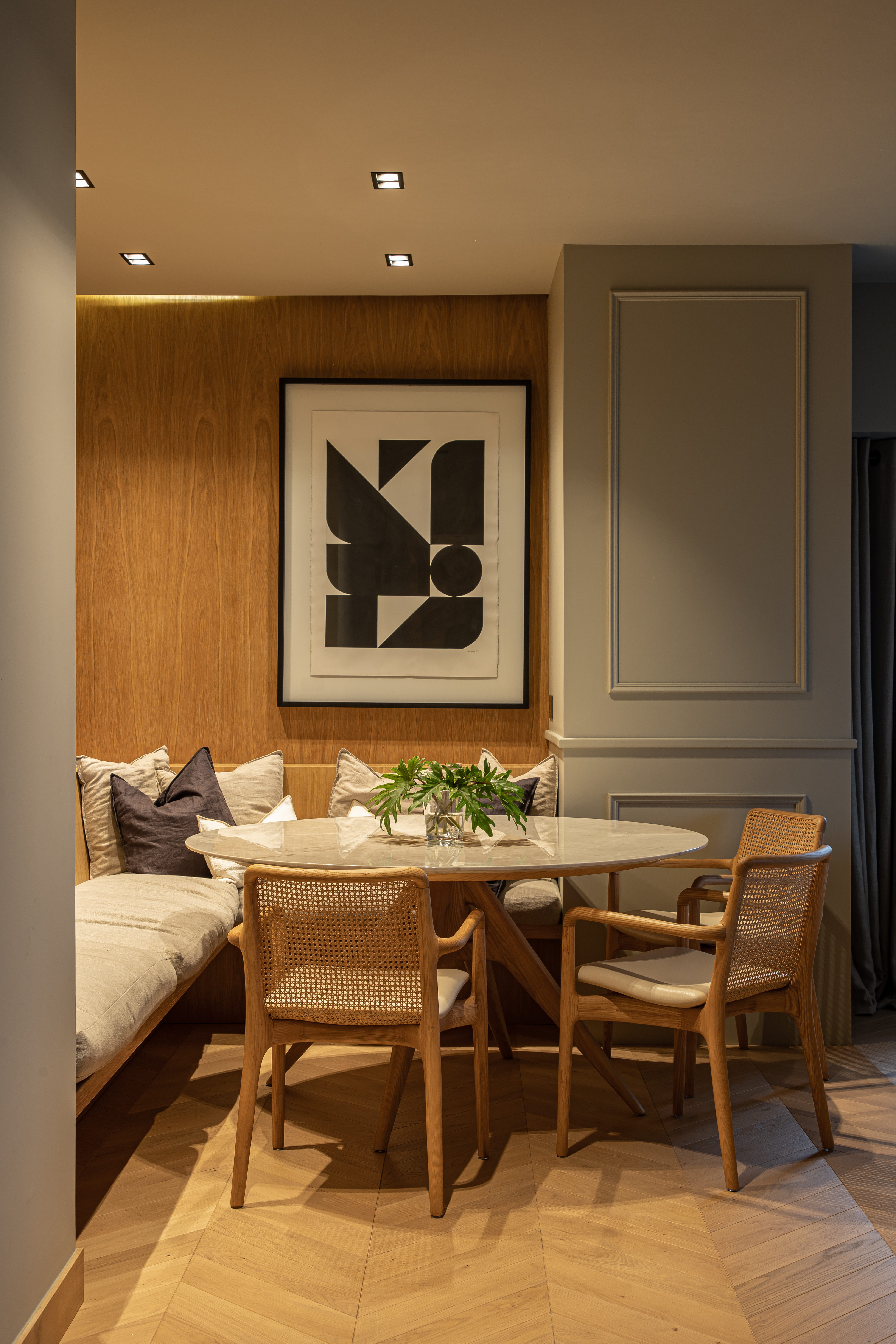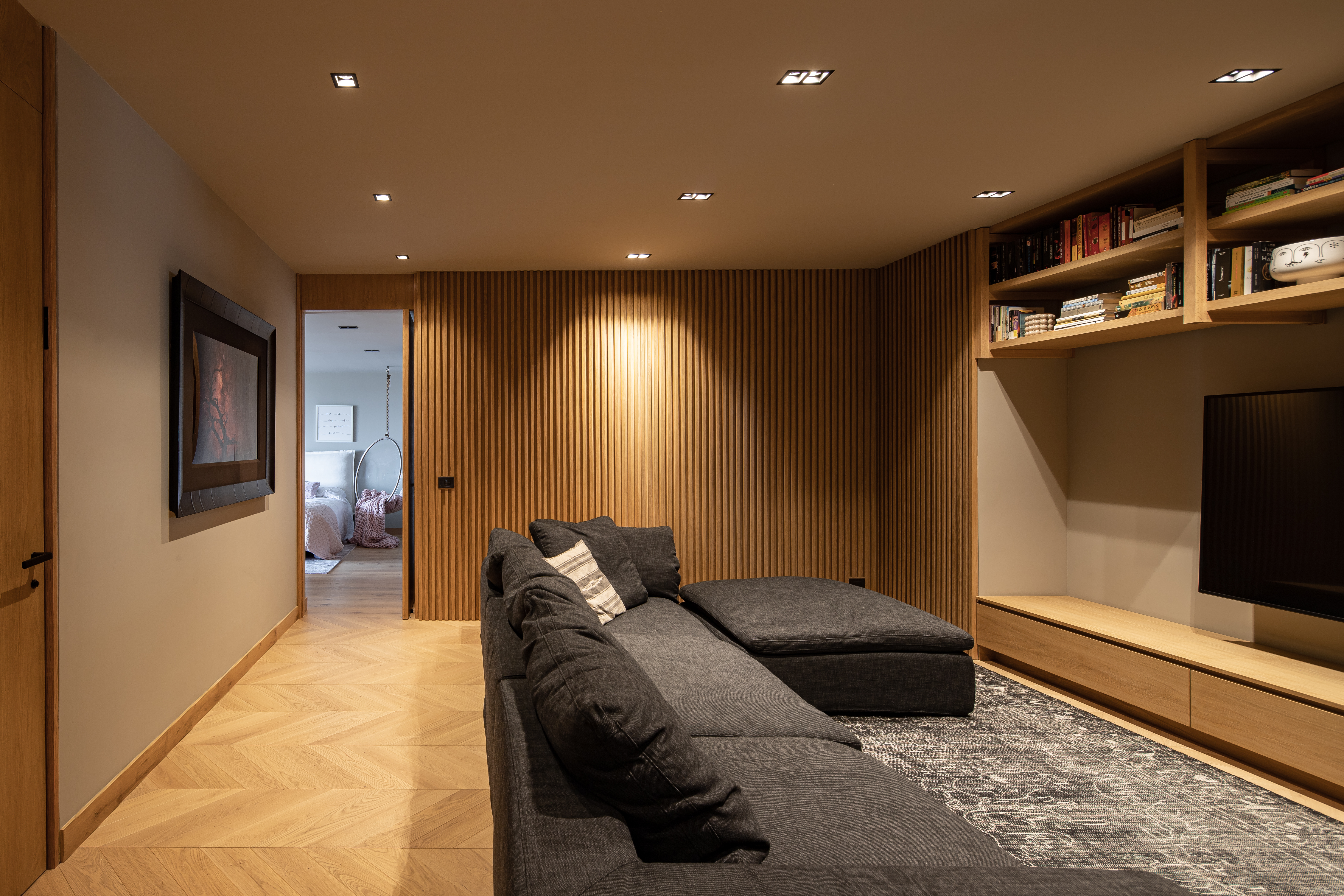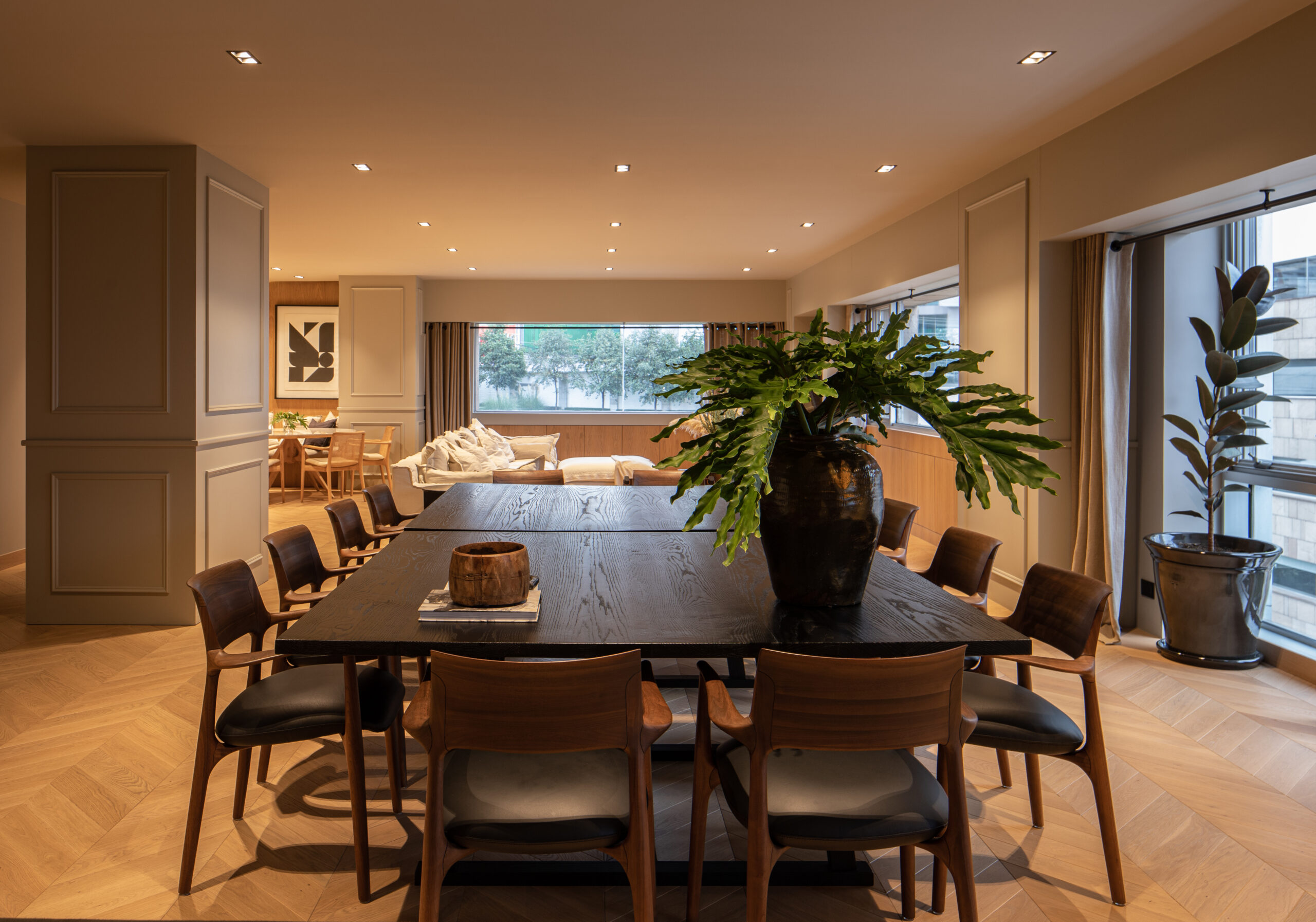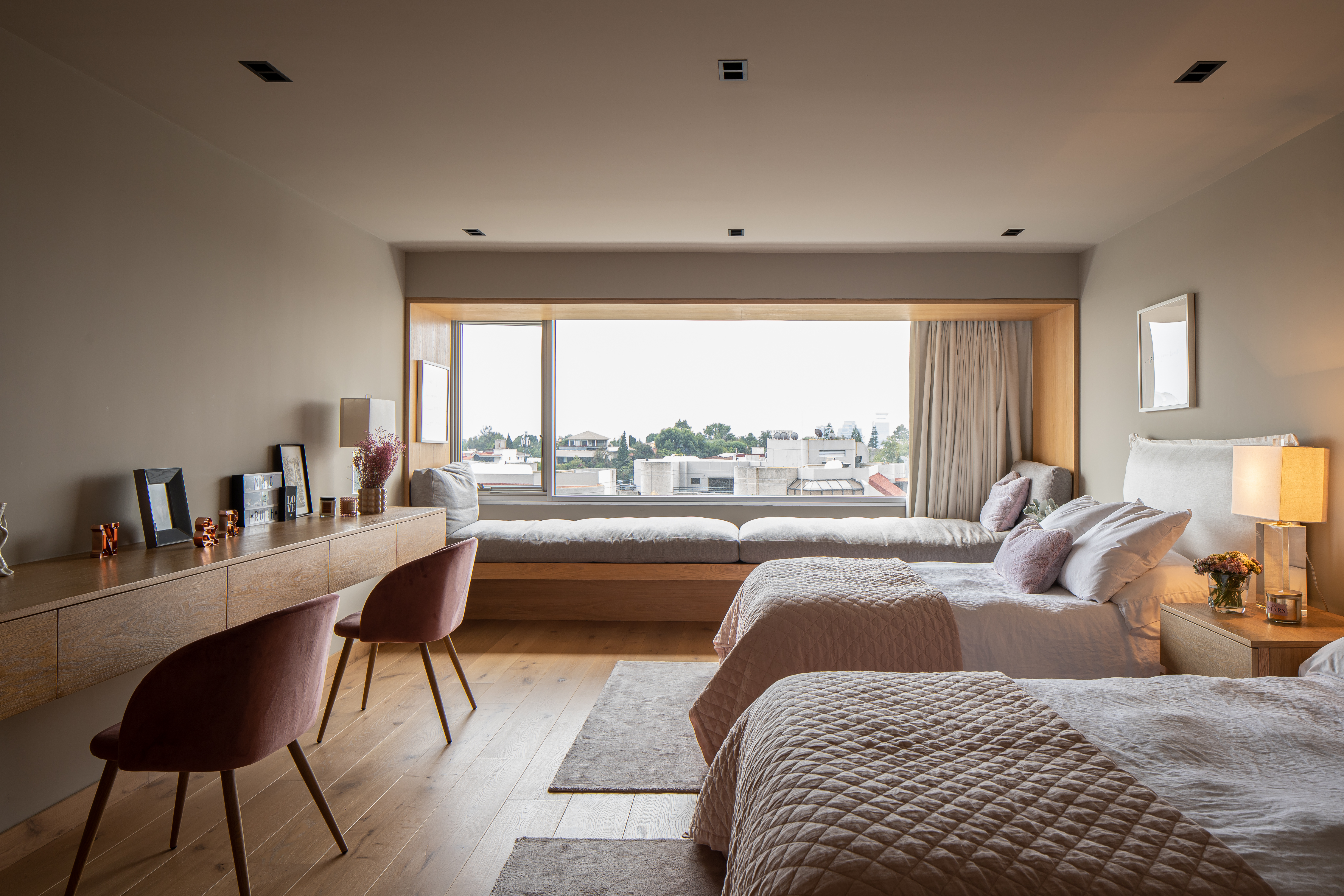 Para este proyecto se hizo una nueva distribución y fue una remodelacion completa, desde instalaciones hasta el último detalle de acabados. Este departamento representa una combinación entre espacios moder nos con toques de arquitectura francesa. La elegancia del espacio surge de los materiales naturales utilizados y los remates visuales generados con una propuesta de diseño vanguardista. El mobiliario viste los espacios de forma cálida y personal.